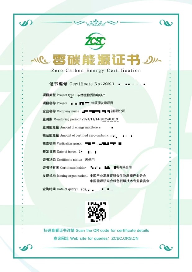 零碳能源证书示例: